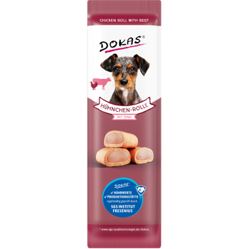 Dokas mekane punjene poslastice za pse s punjenjem od filea pilećih prsa i govedine.