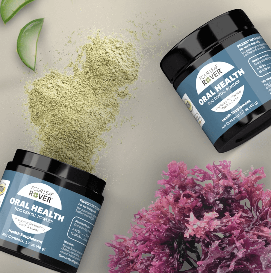 Four Leaf Rover Oral Health je dodatak prehrani za pse za prirodnu podršku zdravom oralnom mikrobiomu.