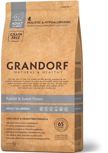 Grandorf Kunić je grain free (bez žitarica) suha hrana za odrasle pse srednje velikih i velikih pasmina, napravljena s puno svježeg mesakunića i puretine. Hipoalergena i lako probavljiva.