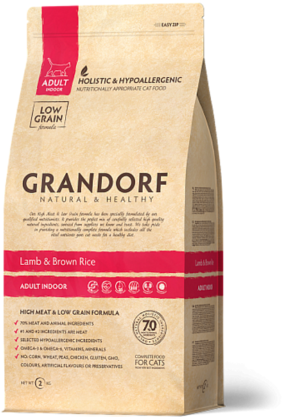 Grandorf Cat janjetina suha hrana za odrasle i sterilizirane mačke, bogata svježim purećim mesom i janjetinom. To je low grain hrana za mačke sa smeđom rižom.