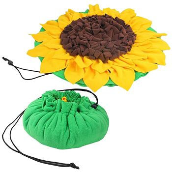 Njuškavac (podložak za njuškanje) za pse u obliku sklopivog suncokreta koji se može veličinom i gustoćom prilagoditi potrebama pasa (veći izazov ako je skupljen (gustoća), može se pričvrstiti za nogu stolice ili stola ako pas voli prevrtati njuškavce, a praktičan je i za pranje i nošenje na put!