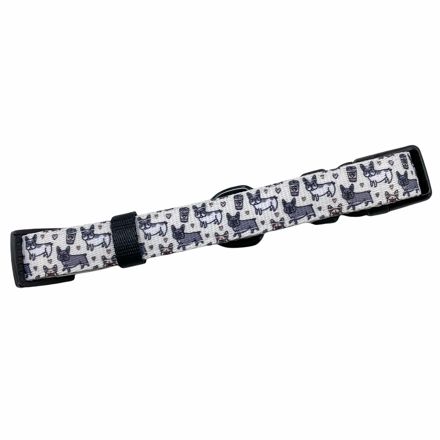 Potpuno podesiva ogrlica za pse s uzorokom “Frenchie”.