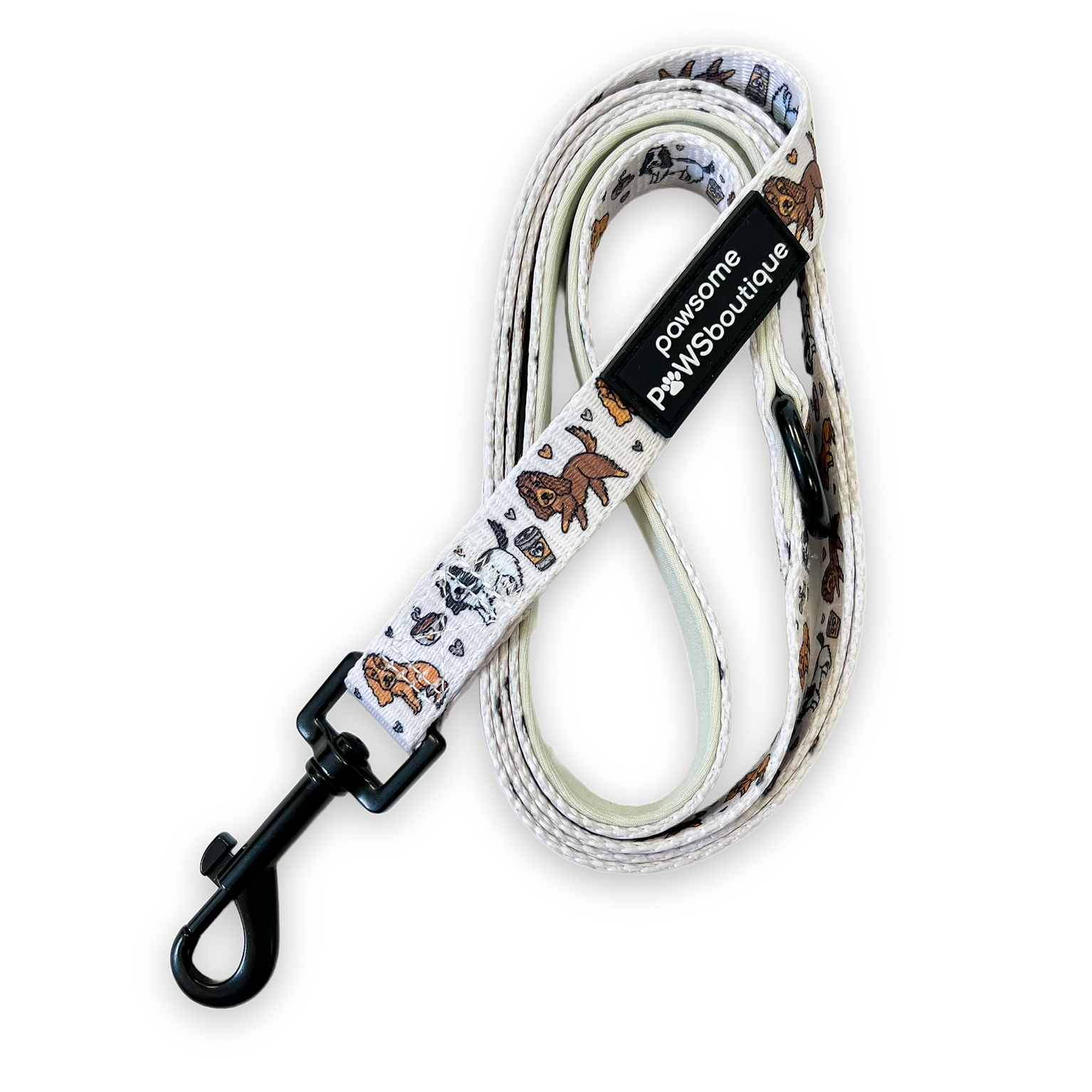 Podstavljena neoprenska ručka za dodatnu udobnost! Super sladak uzorak.Okretna crna kopča koja može izdržati veliko opterećenje. Dodatni D prsten na dnu ručke – neophodan za vrećice za izmet!