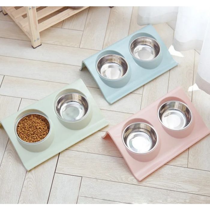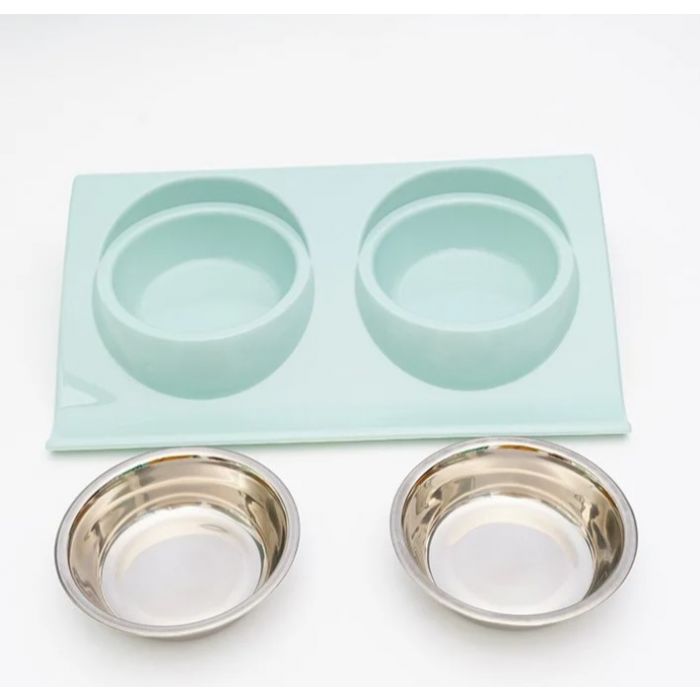 Povišeni stalak za hranjenje sa dvije inxo zdjelice idealan je za mačke i manje pse.