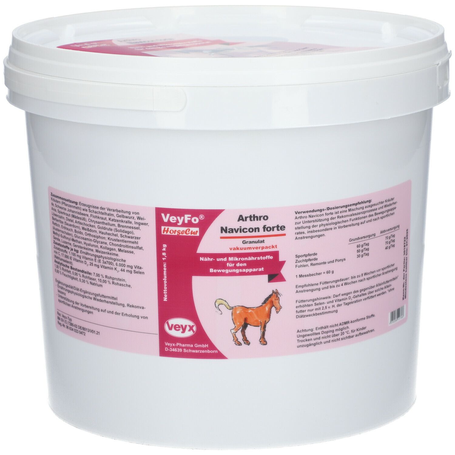 Veyx ArthroNavicon Forte je dodatak prehrani za konje u obliku hladno prešanih peleta koji se koristi za potporu kod oporavka i povratka funkcije lokomotornog sustava (zglobovi, hrskavice, tetive, ligamenti) konja, kao i kod sportskih konja u natjecanjima.