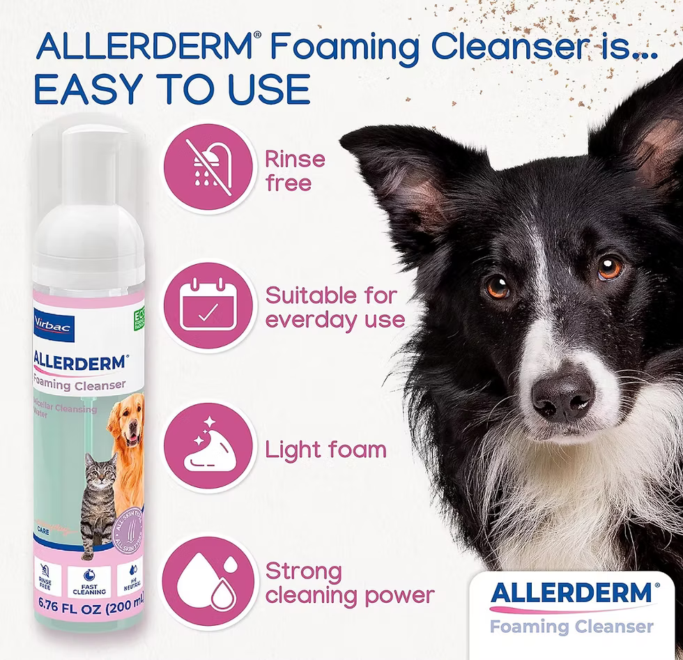 Virbacov Allerderm Foam šampon za suho pranje pasa i mačaka sa tehnologijom micelarne vode! Vrhunska dermatologija za one koji se ne vole ili ne mogu redovno kupati!