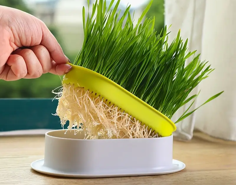 Korijenje ostaje čvrsto fiksirano u donjem dijelu zdjelice, čuva se optimalna razina vlage (uz minimalno zalijevanje), a maca se može svakodnevno počastiti zdravom i ukusnom travom punom minerala koja pomaže općem zdravlju i zdravlju probave!